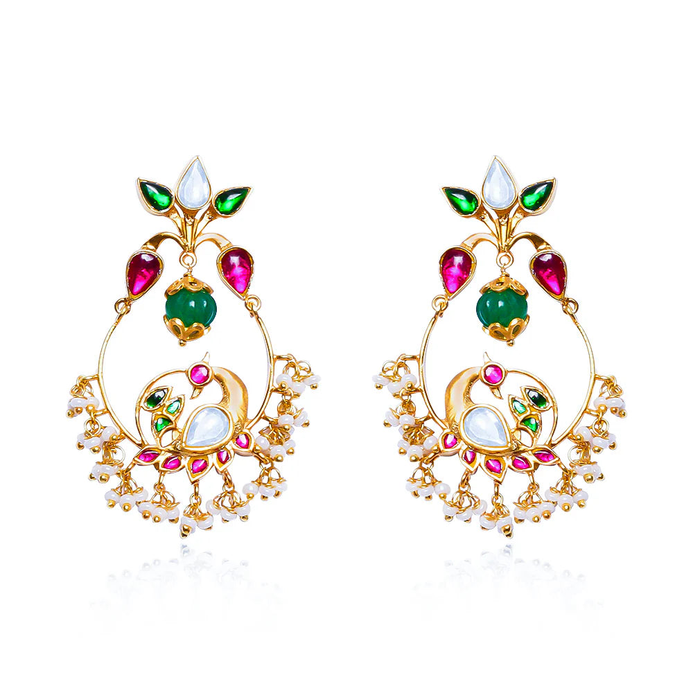 92.5 Sterling Silver Kundan Peacock Chandbali