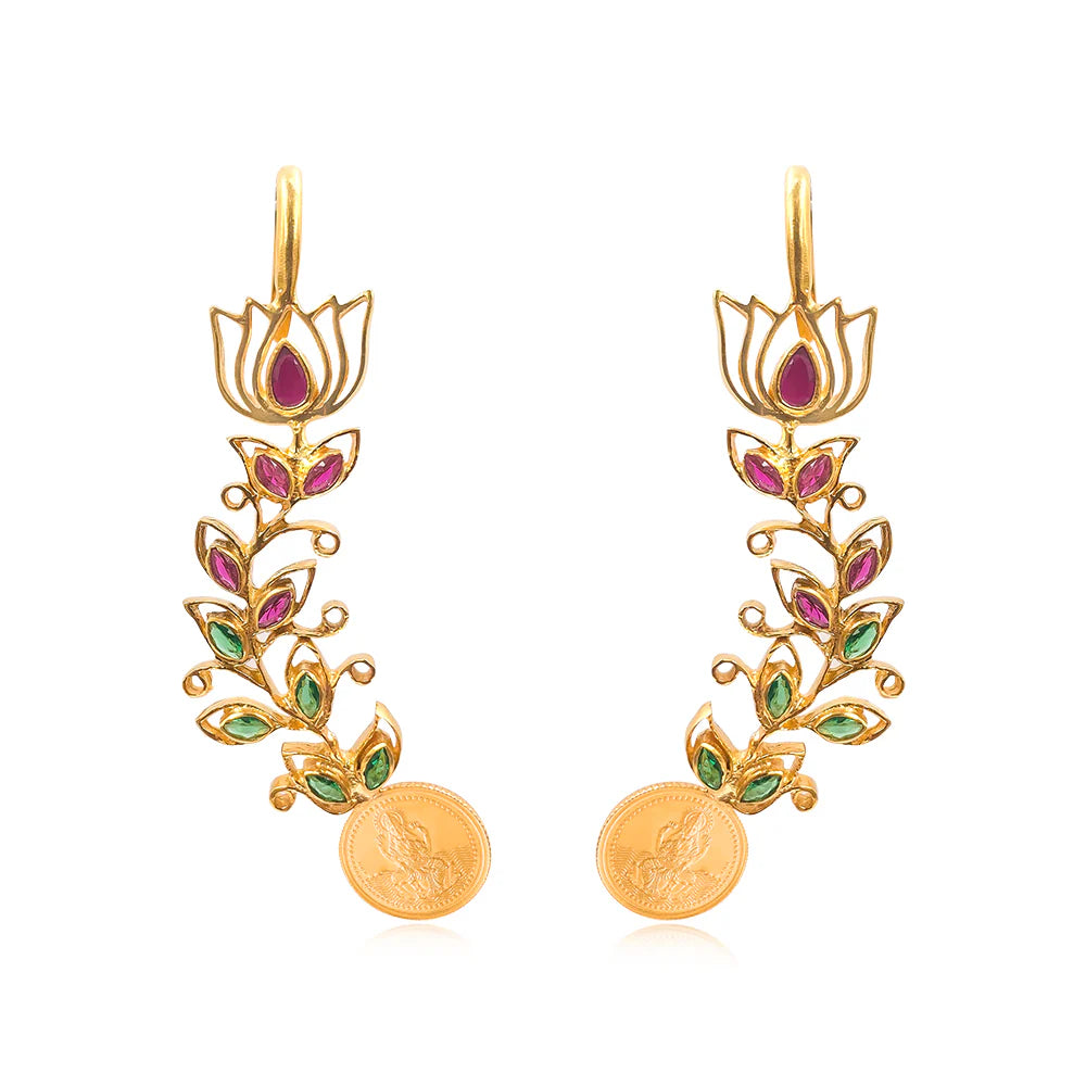 92.5 Silver Dhanlakshmi and Lotus Earcuff