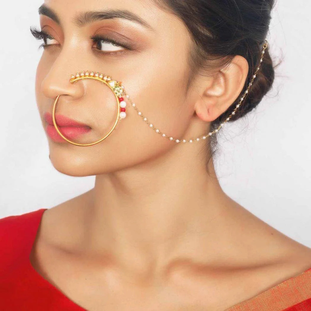 Elevate your traditional jewelry collection with this exquisite 92.5 silver nath, expertly gold-plated for a luxurious finish. Crafted from sterling silver, this nose ornament combines authentic craftsmanship with contemporary elegance. The gold plating adds a warm, radiant glow while the pure silver base ensures durability and hypoallergenic properties. Perfect for weddings, festivals, or everyday wear, this nath seamlessly blends cultural heritage with refined sophistication. A timeless piece that complements both traditional and modern aesthetics.