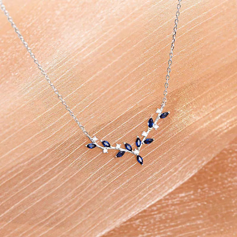 925 Silver Antler Necklace with Deep Sea Blue Zircon High-grade Light Luxury Style