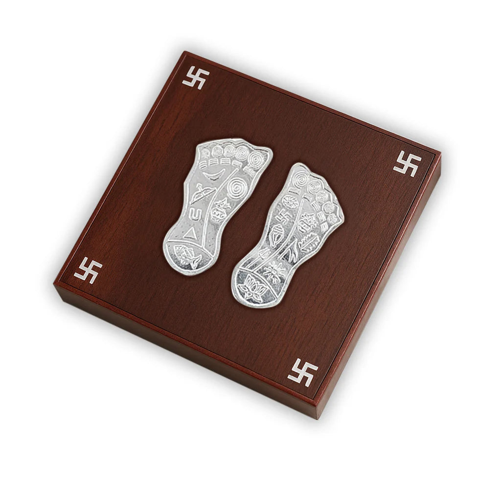 Elevate your spiritual practice with this exquisite 92.5 Silver Dhanlakshmi Charan, a sacred representation of the goddess of wealth and prosperity. Crafted from premium sterling silver, this piece combines traditional artistry with refined craftsmanship, making it an ideal addition to your puja altar or personal devotional space. The intricate detailing captures the divine essence of Dhanlakshmi, symbolizing abundance and financial blessings. Perfect for collectors of authentic religious artifacts, this sterling silver creation serves as both a meaningful spiritual tool and a treasured heirloom piece that honors ancient traditions.